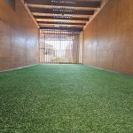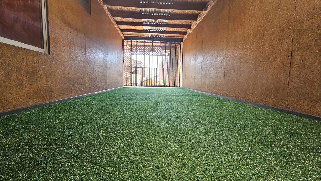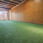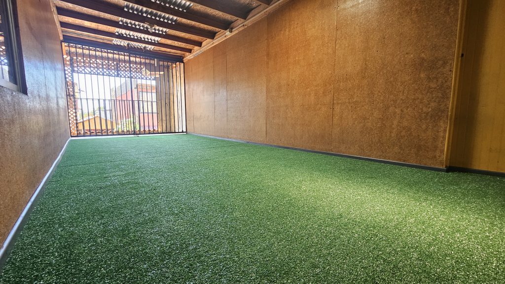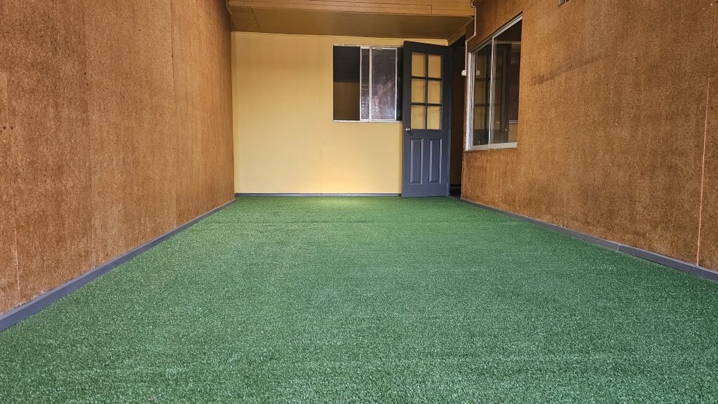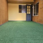 - Espacio tipo quincho o terraza recreativa con pasto sintético, ideal para reuniones o actividades familiares